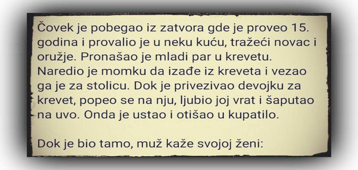 Čovek je pobegao iz zatvora gde je proveo 15. godina i provalio je u neku kuću, tražeći novac i oružje. Pronašao je mladi par u…