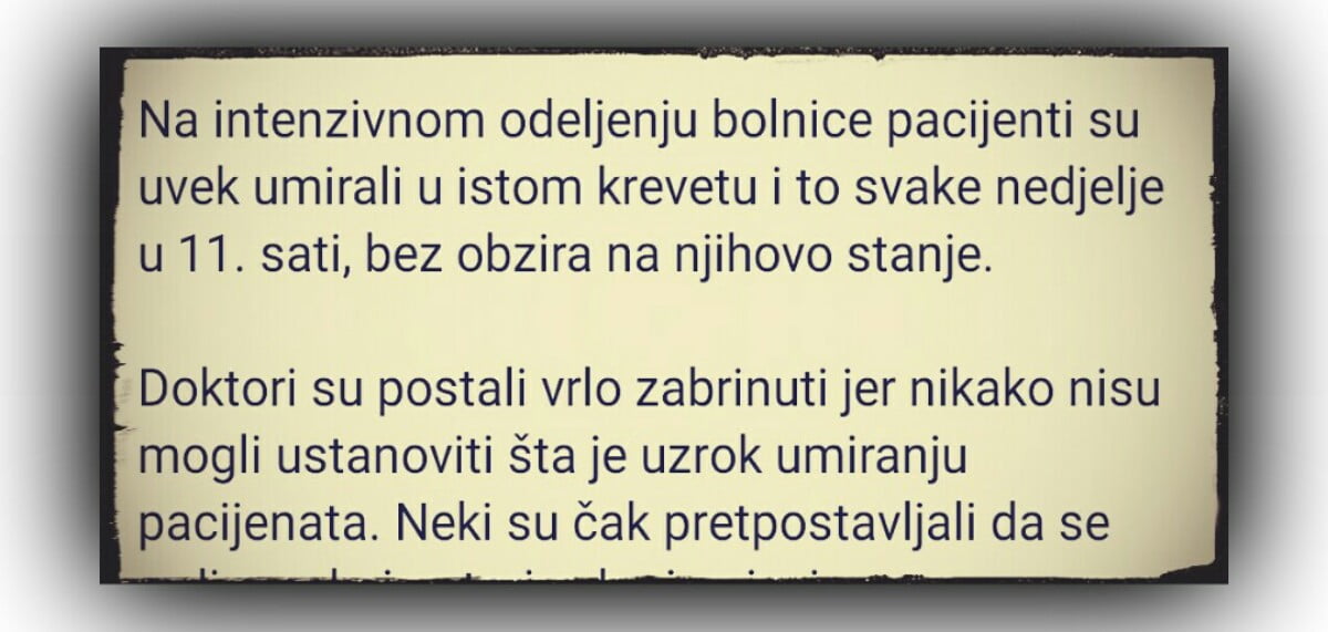 Na intenzivnom odeljenju bolnice pacijenti su uvek umirali u istom krevetu i to svake nedjelje u 11. sati, bez obzira na njihovo stanje. Doktori su…
