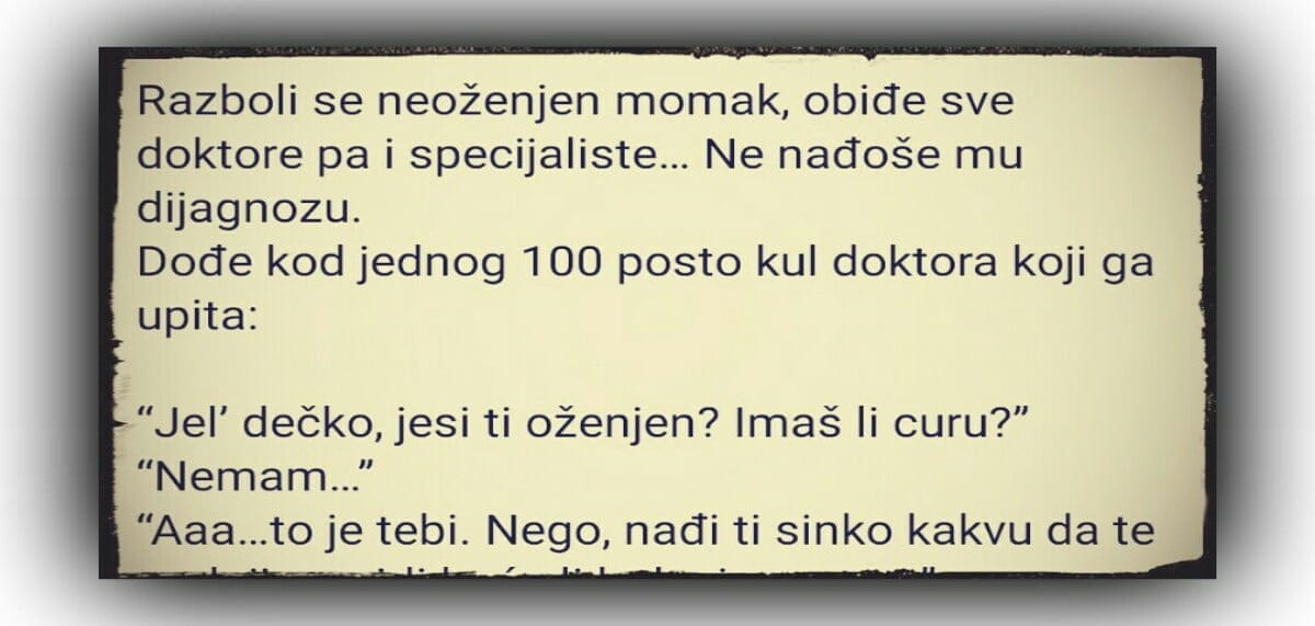 Razboli se neoženjen momak, obiđe sve doktore pa i specijaliste… Ne nađoše mu dijagnozu.