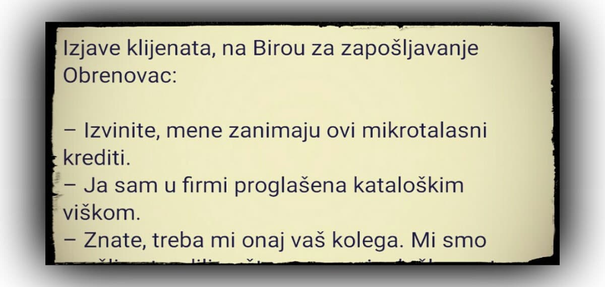 – Izvinite, mene zanimaju ovi mikrotalasni krediti.
