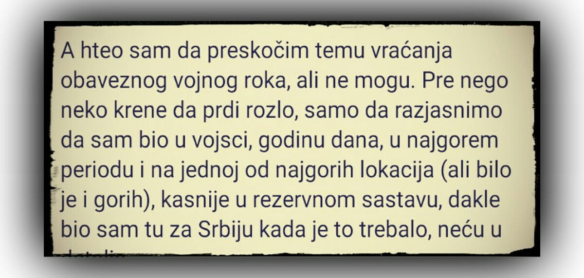 A hteo sam da preskočim temu vraćanja obaveznog vojnog roka, ali ne mogu. Pre nego neko krene da prdi rozlo, samo da razjasnimo da sam…