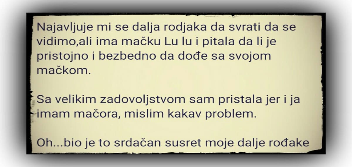 Najavljuje mi se dalja rodjaka da svrati da se vidimo,ali ima mačku Lu lu i pitala da li je pristojno i bezbedno da dođe sa…