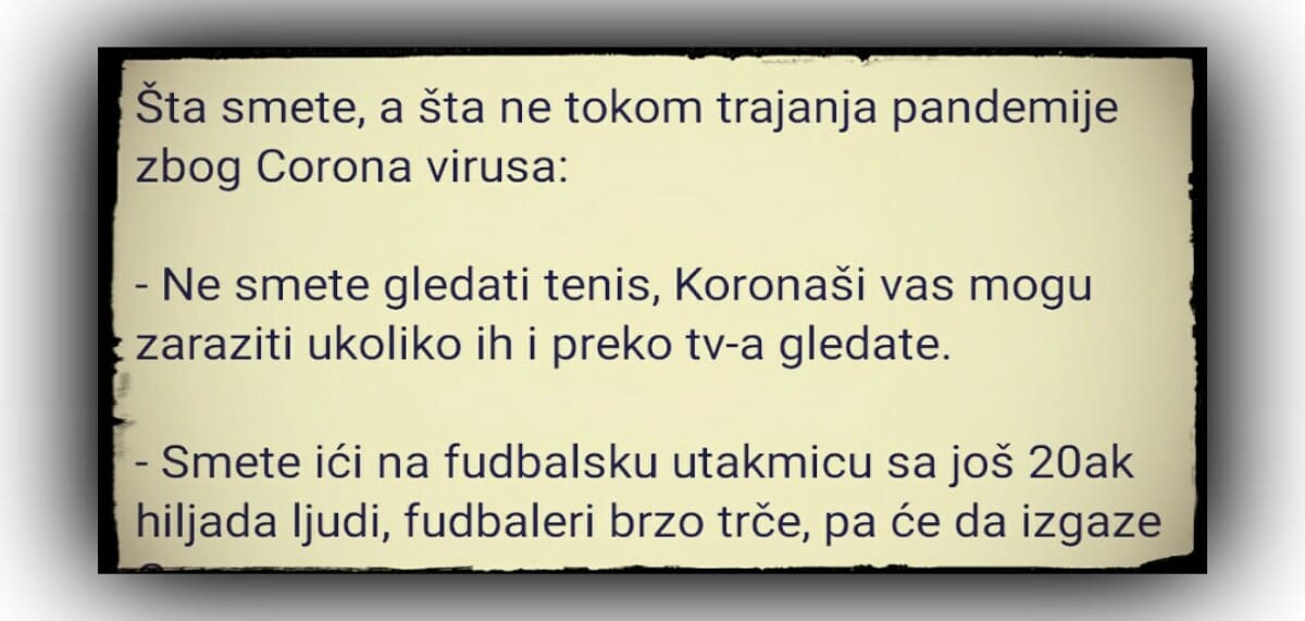 Šta smete, a šta ne tokom trajanja pandemije zbog Corona virusa: – Ne smete gledati tenis, Koronaši vas mogu zaraziti ukoliko ih i preko tv-a…