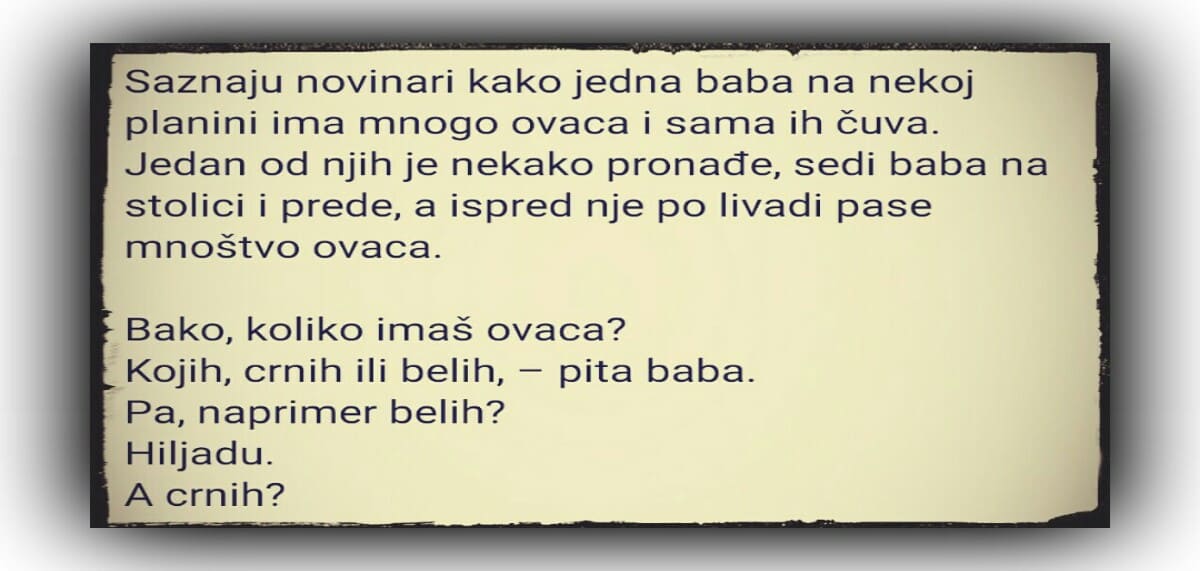 Saznaju novinari kako jedna baba na nekoj planini ima mnogo ovaca i sama ih čuva.