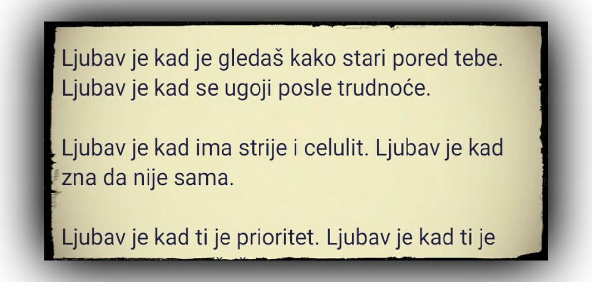 Ljubav je kad ima strije i celulit. Ljubav je kad zna da nije sama.