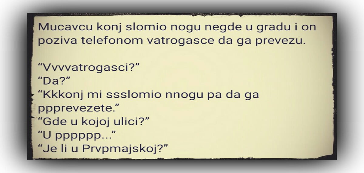 “Kkkonj mi ssslomio nnogu pa da ga ppprevezete”