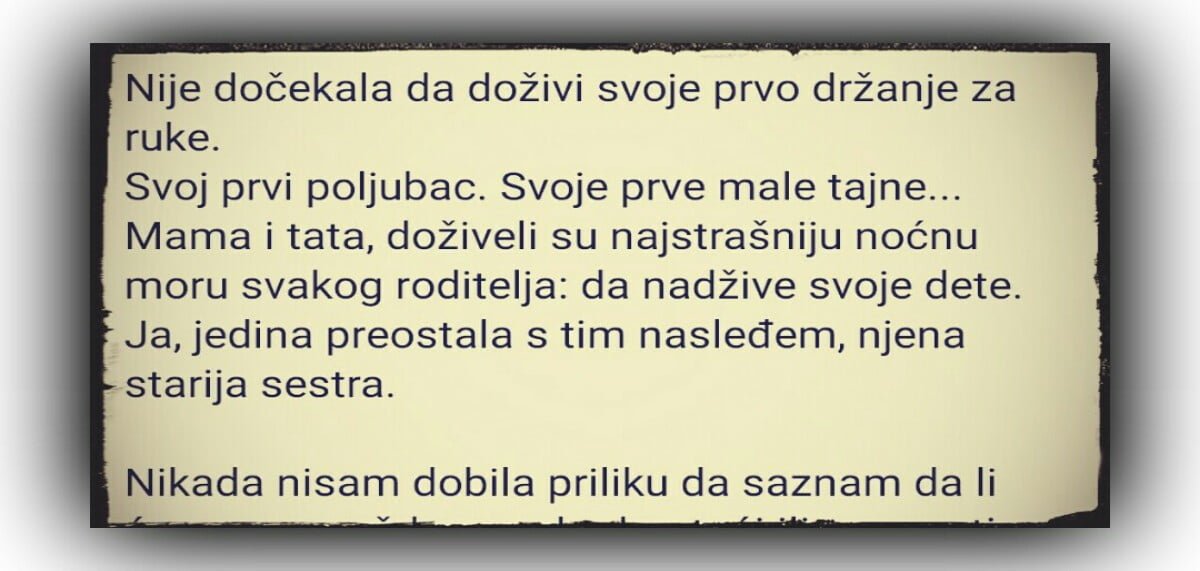 Mama i tata, doživeli su najstrašniju noćnu moru svakog roditelja: da nadžive svoje dete.