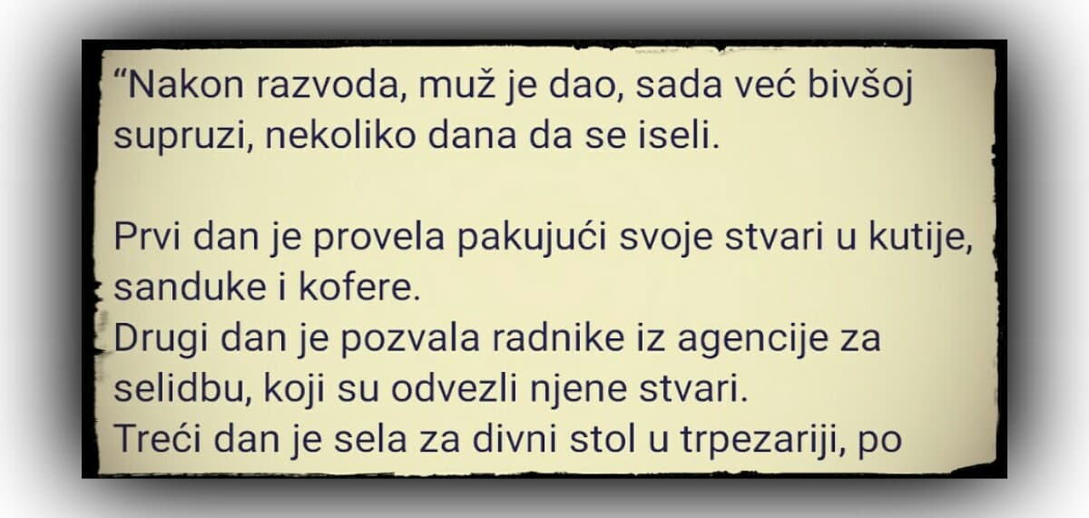 “Nakon razvoda, muž je dao, sada već bivšoj supruzi, nekoliko dana da se iseli.
