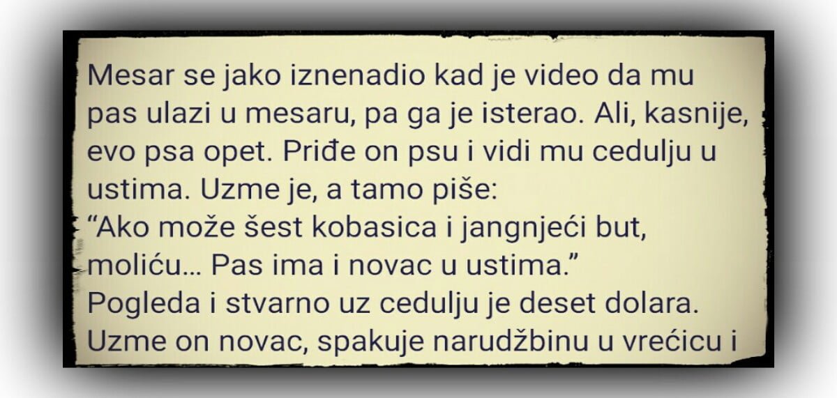 Mesar se jako iznenadio kad je video da mu pas ulazi u mesaru, pa ga je isterao. Ali, kasnije, evo psa opet. Priđe on psu…