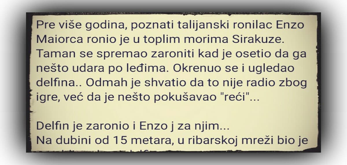 Pre više godina, poznati talijanski ronilac Enzo Maiorca ronio je u toplim morima Sirakuze. Taman se spremao zaroniti kad je osetio da ga nešto udara…