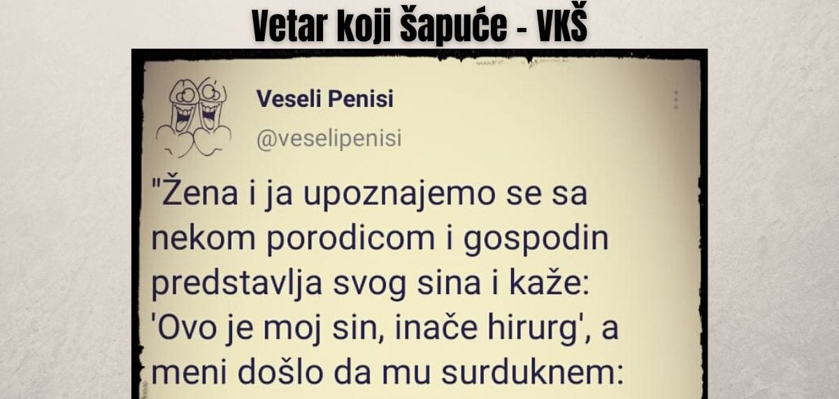 "Žena i ja upoznajemo se sa nekom porodicom i gospodin predstavlja svog sina i kaže: 'Ovo je moj sin, inače hirurg', a meni došlo da…