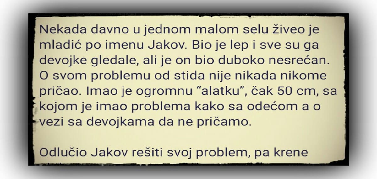 Nekada davno u jednom malom selu živeo je mladić po imenu Jakov. Bio je lep i sve su ga devojke gledale, ali je on bio…