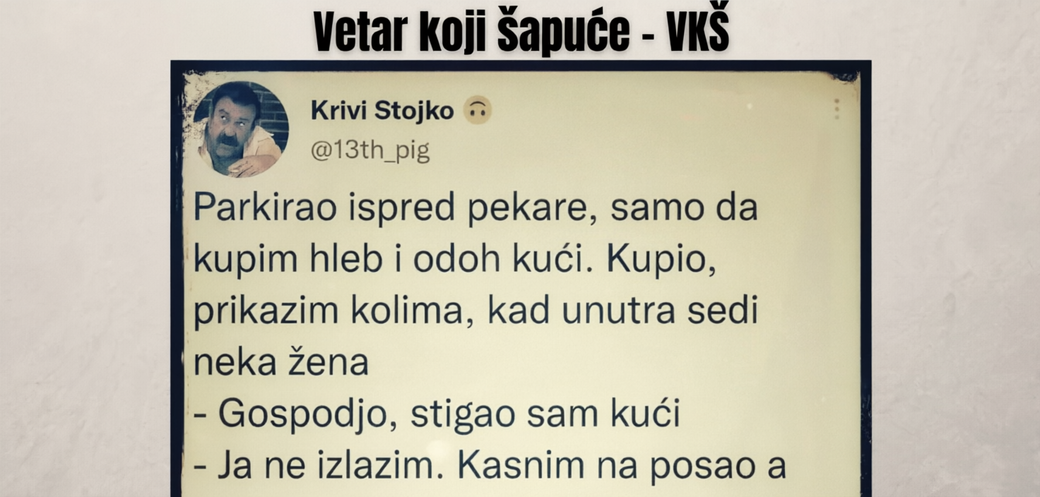 Parkirao ispred pekare, samo da kupim hleb i odoh kući. Kupio, prikazim kolima, kad unutra sedi neka žena