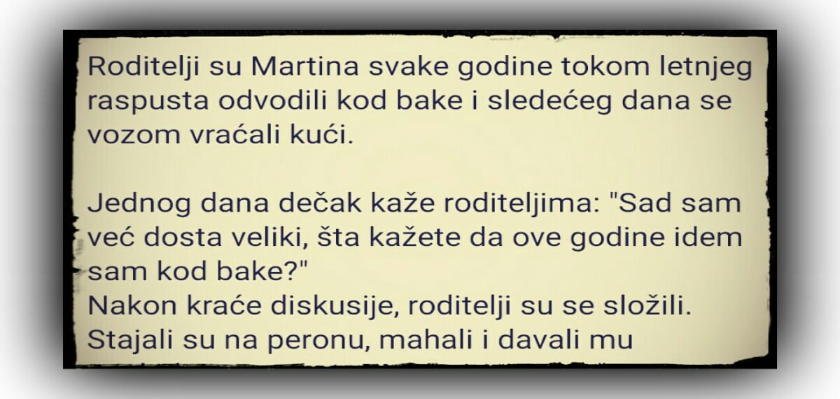 Roditelji su Martina svake godine tokom letnjeg raspusta odvodili kod bake i sledećeg dana se vozom vraćali kući.