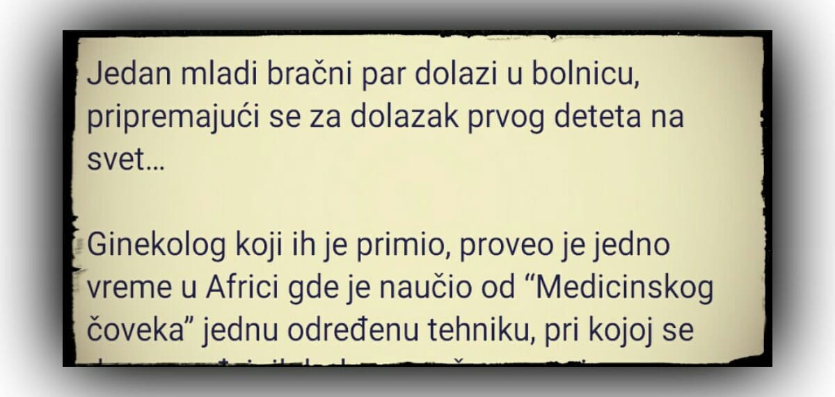 Ginekolog koji ih je primio, proveo je jedno vreme u Africi gde je naučio od “Medicinskog čoveka” jednu određenu tehniku, pri kojoj se deo porođajnih bolova može preneti na oca.