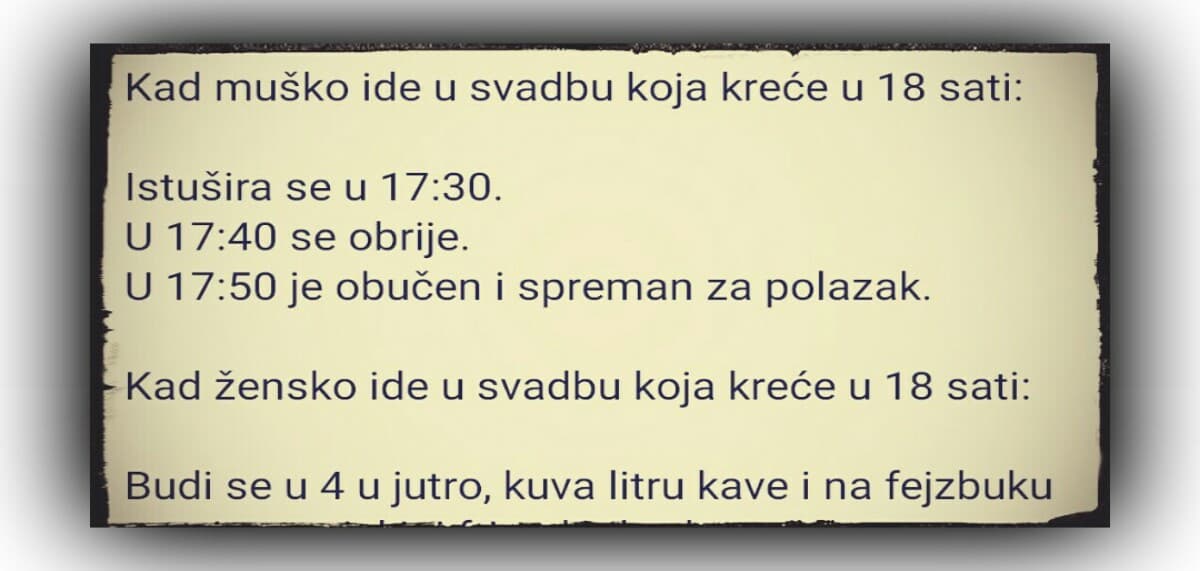 Kad muško ide u svadbu koja kreće u 18 sati: