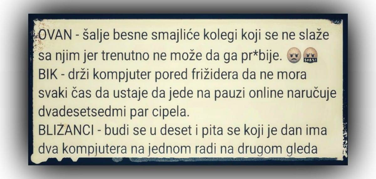 BIK – drži kompjuter pored frižidera da ne mora svaki čas da ustaje da jede na pauzi online naručuje dvadesetsedmi par cipela.