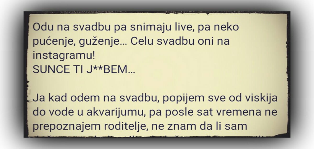 Odu na svadbu pa snimaju live, pa neko pućenje, guženje… Celu svadbu oni na instagramu!