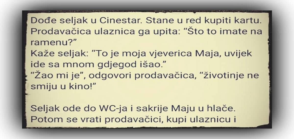 “Žao mi je”, odgovori prodavačica, “životinje ne smiju u kino!”